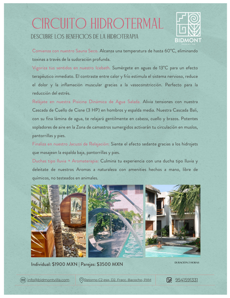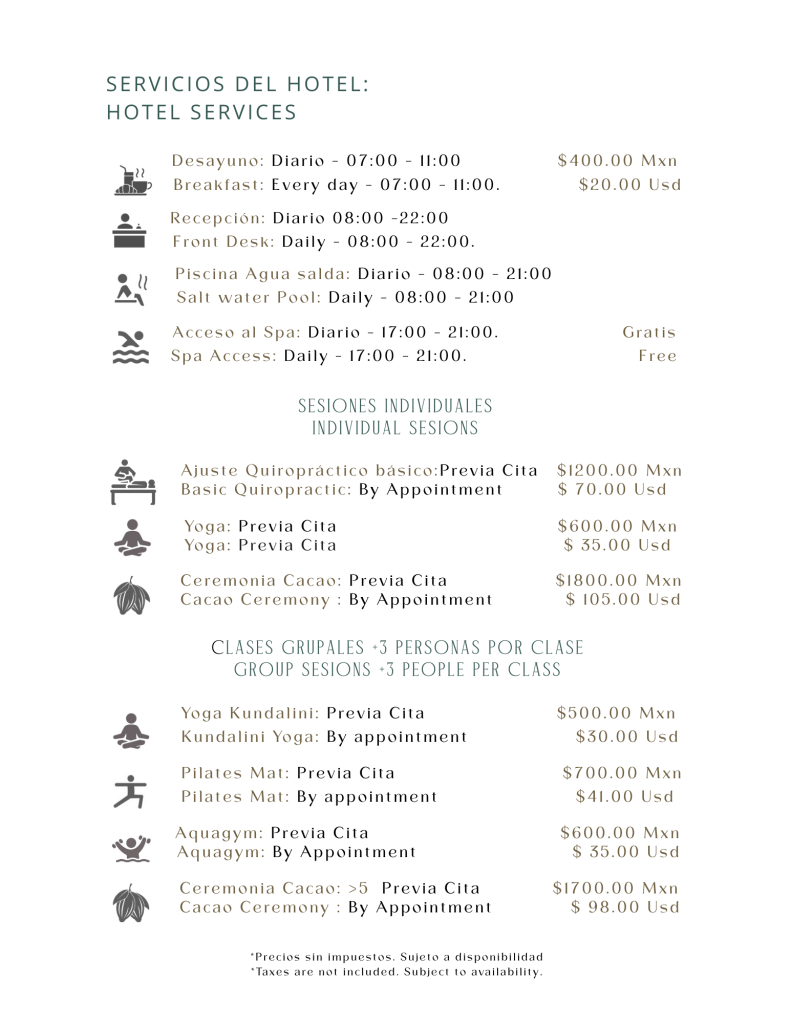 Nuestros servicios integrales de bienestar abarcan actividades físicas y sensoriales aunado a una Spa de Circuito termal, que permitirán liberar estrés, revitalizar la energía y alcanzar una profunda sensación de paz, que intente perdurar más allá de su estancia.