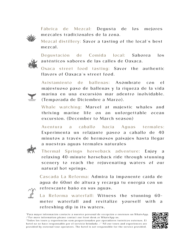 📍Consulta nuestra Guía de Actividades, en la sección de Experiencias Bienestar, para mayor información del destino.